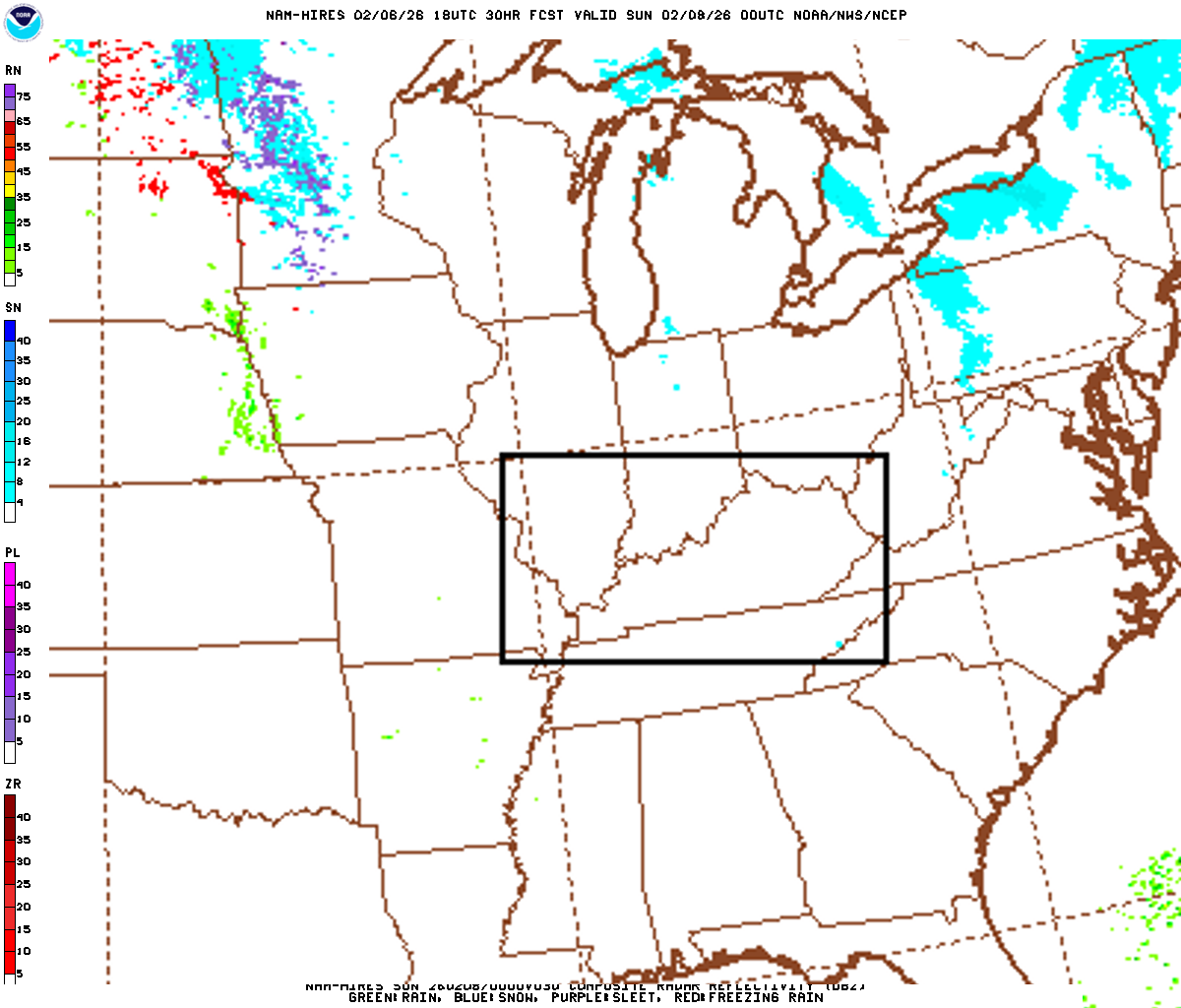 The NAM and GFS show moisture reaching the Bluegrass Core, but soundings indicate a 15-20 degree dewpoint depression in the lowest 3,000 feet, suggesting snow may evaporate before reaching the surface.